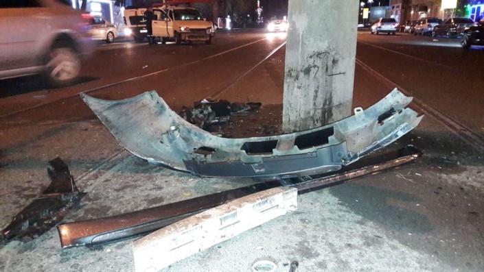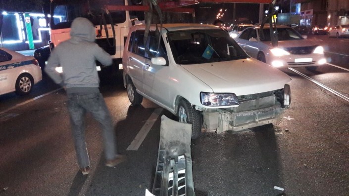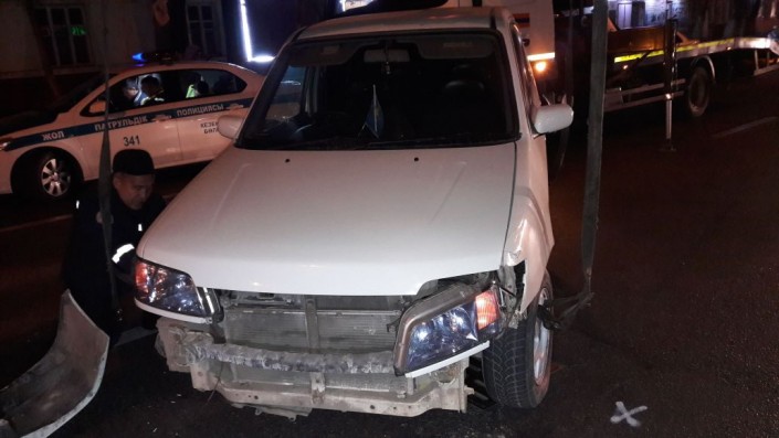 Авария произошла на пересечении улиц Толе би и Аносова. Со слов очевидцев, автомобили Subaru и Nissan двигались в восточном направлении по Толе би. По всей видимости, водитель Nissan решил повернуть на улицу Аносова и врезался в Subaru. Водитель Subaru не справился с управлением и на полном ходу влетел в бетонный столб, после чего его отбросило в припаркованную Kia.