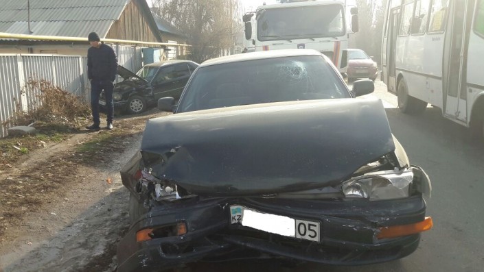 ДТП произошло по улице Яссауи, близ улицы Московская. Toyota Camry двигалась на север по Яссауи. По неизвестным причинам водитель не справился с управлением и на полном ходу врезался в припаркованный автомобиль Mercedes. От удара немецкую иномарку откинуло в забор частного дома. Toyota по инерции повредила несколько бордюров и вылетела в арык.