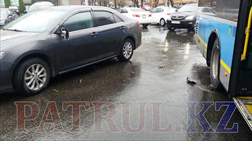 "Троллейбус стоял на перекрестке, водитель собирался делать разворот. Справа от него стояла легковушка, которая тоже разворачивалась и при этом задела троллейбус. Водители вышли на улицу и стали выяснять отношения, затем водитель общественного транспорта взял молоток и разбил им заднюю фару и зеркало автомашины Camry", - отмечает Patrul.kz.