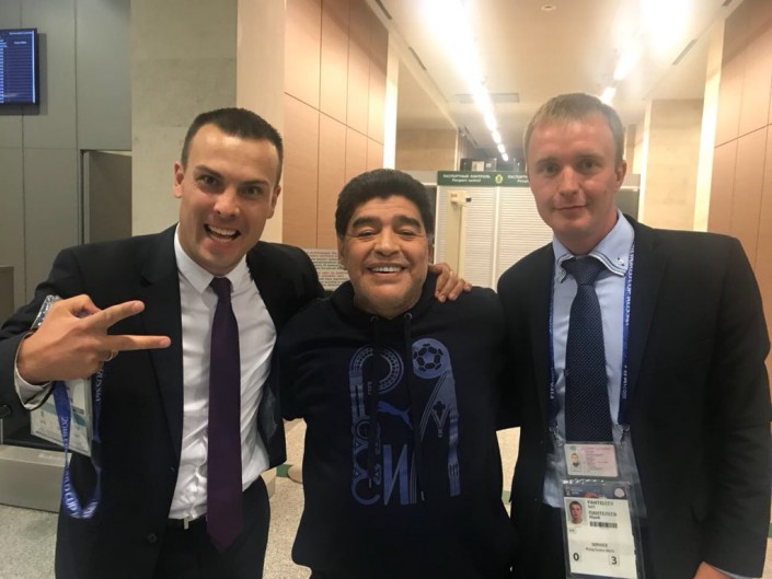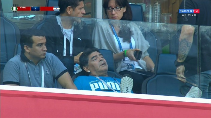 Марадона наблюдал за матчем из VIP-ложи, и во время телетрансляции камеры неоднократно показывали его бурные эмоции и реакцию на происходящее. Футболист вел себя вызывающе и порой неадекватно. Перед игрой Марадона станцевал с болельщицей сборной Нигерии. А после второго гола аргентинцев показал неприличный жест.