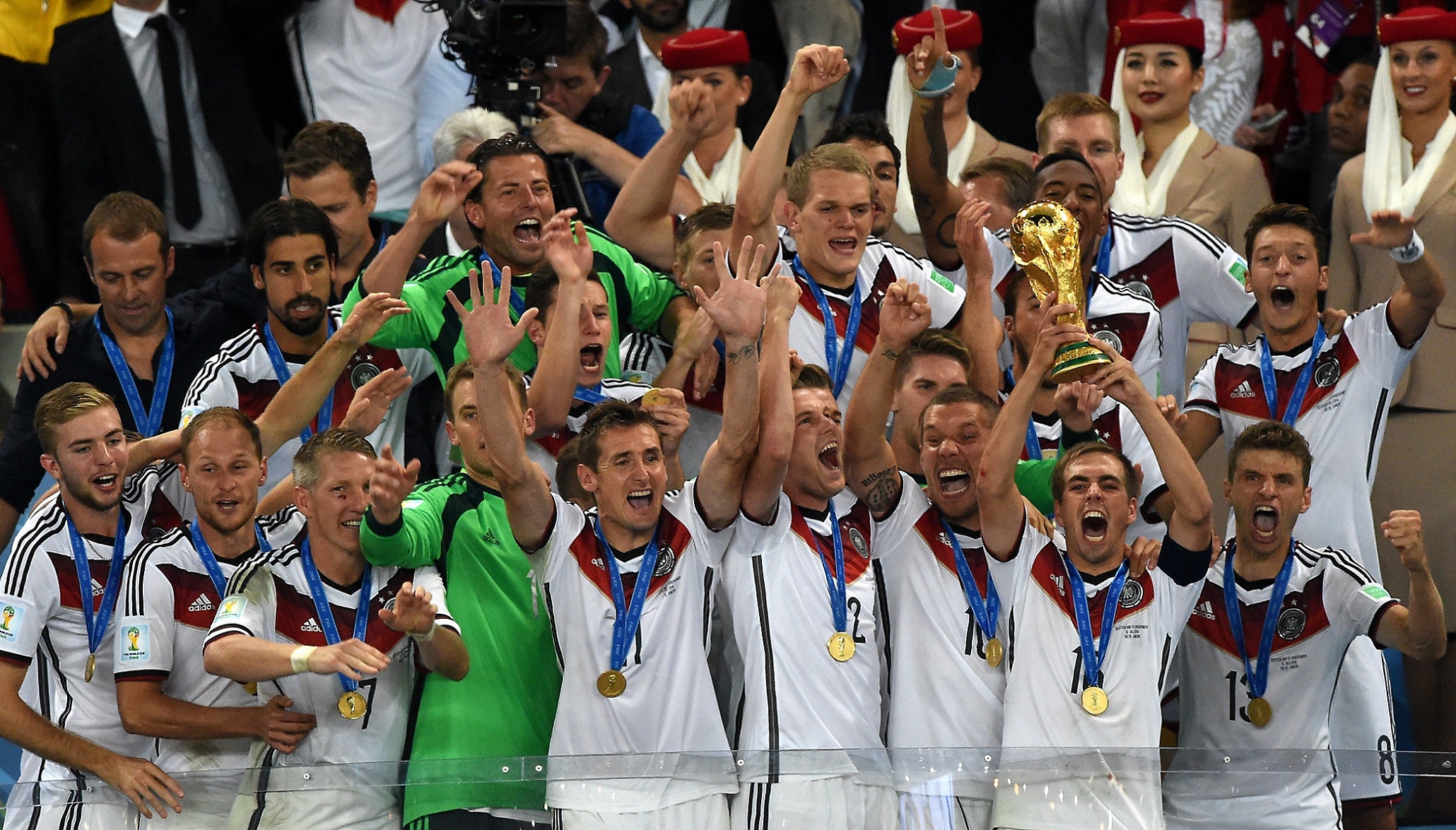 13 июля. Филипп Лам поднимает над головой Кубок Мира, а разбитая скула Бастиана Швайнштайгера напоминает, какой ценой он достался Германии.