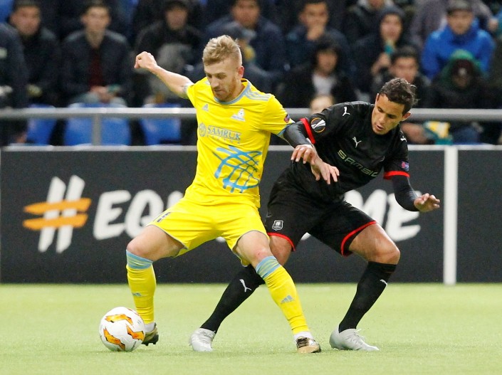 Победу "Астане" принес гол полузащитника сборной Казахстана Бахтиера Зайнутдинова, который на 64-й минуте поразил ворота "Ренна" головой после подачи хорватского хавбека Марина Томасова с углового. Для 20-летнего Зайнутдинова, который дебютировал в групповом раунде ЛЕ, этот мяч стал первым в еврокубках.