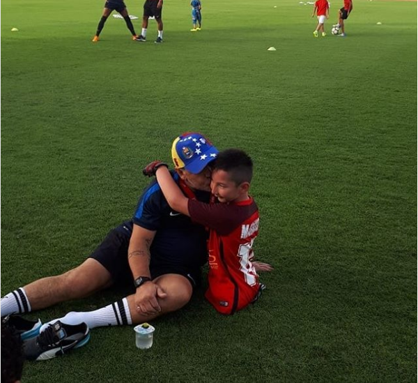 Диего Марадона сыграл в футбол с казахстанским мальчиком без ног Фото: Instagram/ali_amir_happy