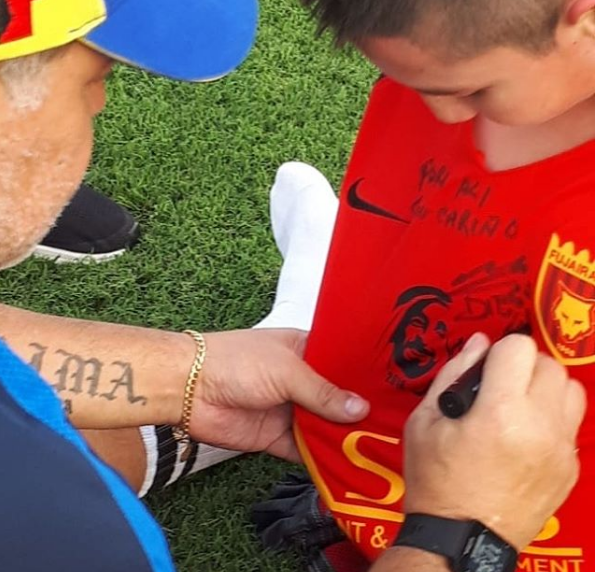 Али пообщался и поиграл с легендой, постоял на воротах и получил от аргентинца подарки. "Gracias, Али", - написал Марадона в своем Instagram.