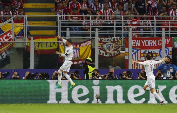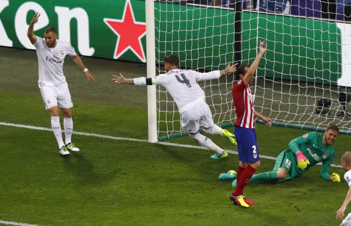 Однако своим шансом подопечные Диего Симеоне не воспользовались. Первый гол в этой встрече на 15-й минуте забил капитан "Галактикос" Серхио Рамос. Защитник буквально заковырял мяч между ног Яна Облака после штрафного Тони Крооса.