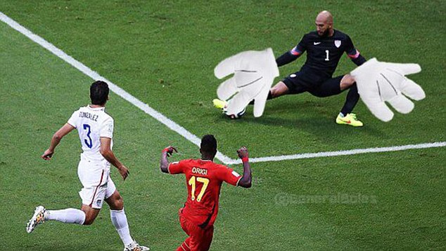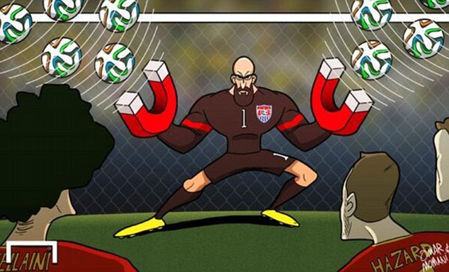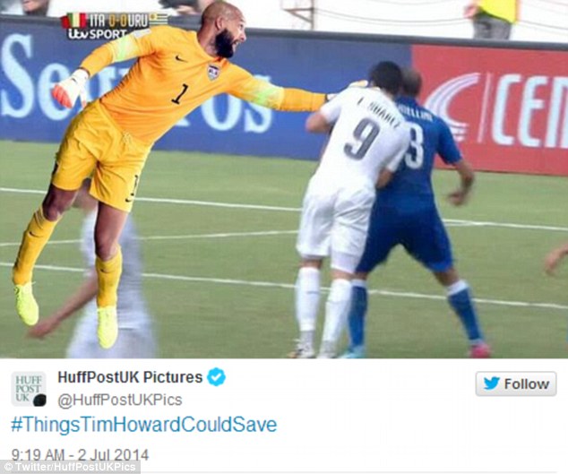 Фантастические сейвы голкипера сборной США Тима Ховарда в матче 1/8 финала против Бельгии на чемпионате мира по футболу в Бразилии не спасли американцев от поражения и вылета из турнира, но зато сделали вратаря настоящим героем. Пользователи США и других стран выражают бурный восторг вдохновенной игрой голкипера, а Интернет пестрит фотоколлажами и мемами, обыгрывающими подвиги Тима Ховарда, сообщает Tengrinews.kz.