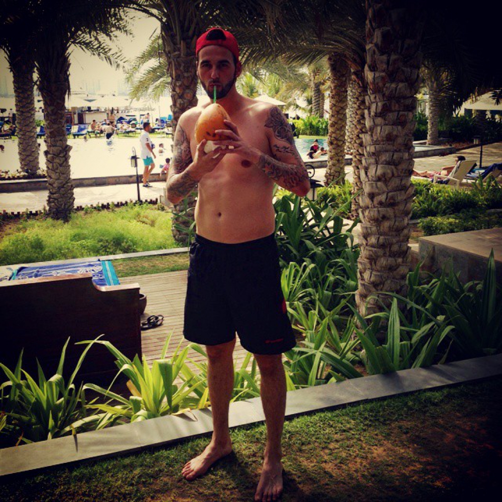 Алексей Щеткин ("Тараз") пьет экзотические коктейли и наслаждается морем и солнцем.
