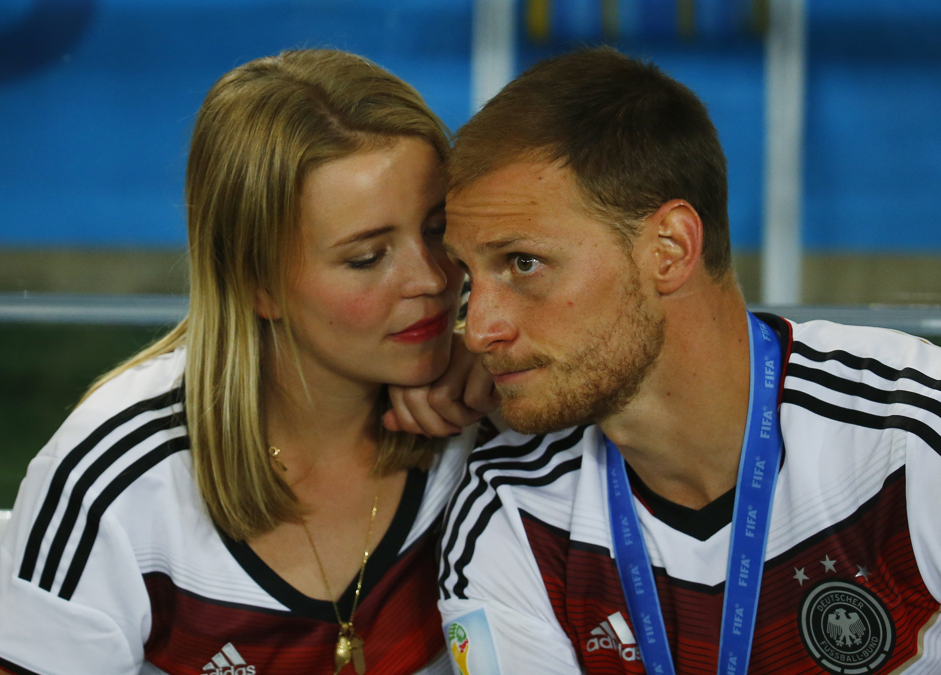 А девушка Бастиана Швайнштайгера Сара Бранднер гордо носила медаль, врученную немецкому футболисту.
