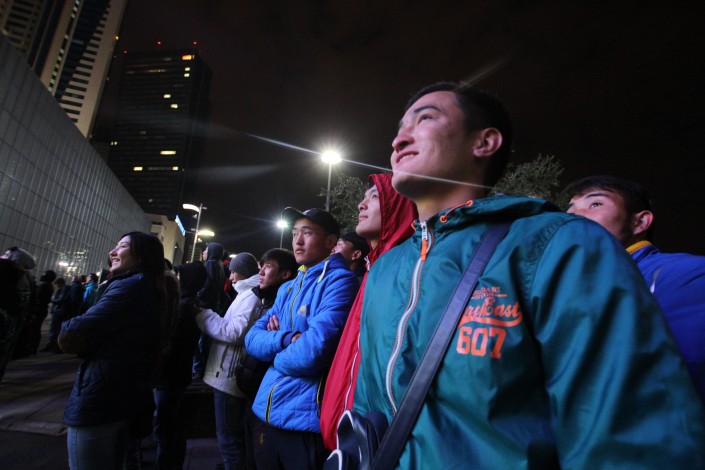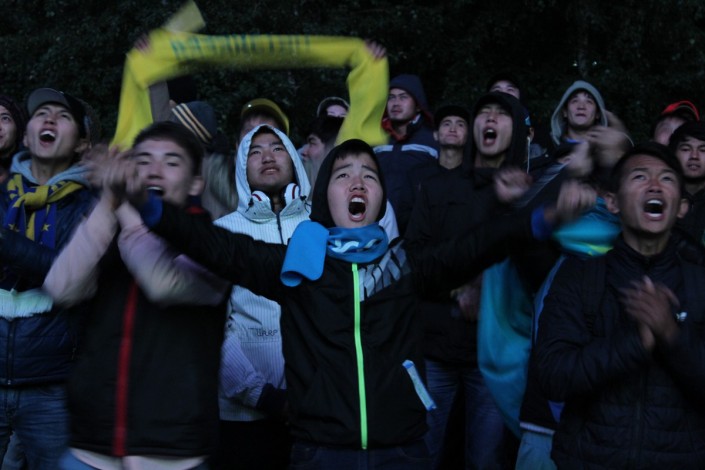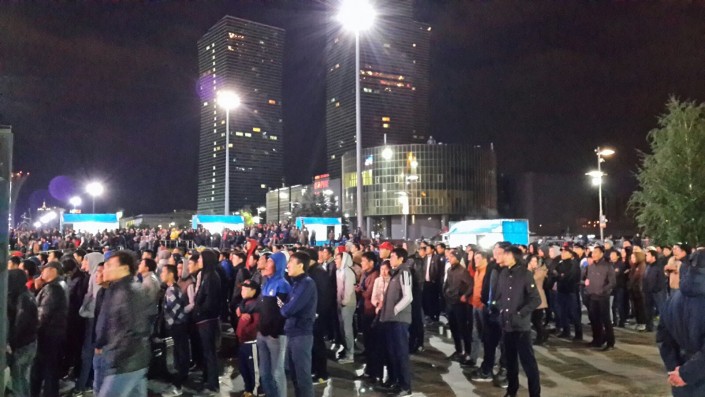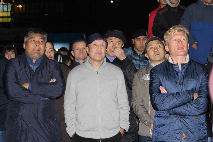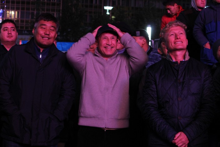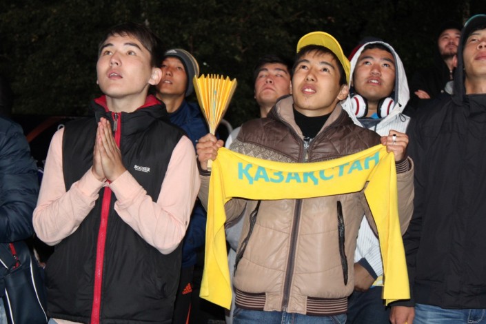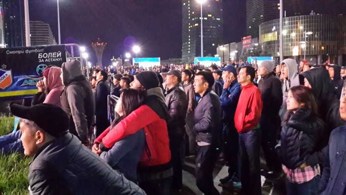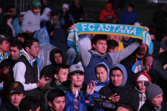 За игрой "Астаны" с кипрским АПОЭЛом столичные фанаты наблюдали на больших экранах "Казмедиацентра". Около трех тысяч болельщиков, несмотря на прохладную погоду и позднее время, собрались, чтобы вместе поддержать своих любимцев. Пришли поддержать команду аким Астаны Адильбек Джаксыбеков, олимпийский чемпион Александр Винокуров и актер Ануар Нурпеисов.