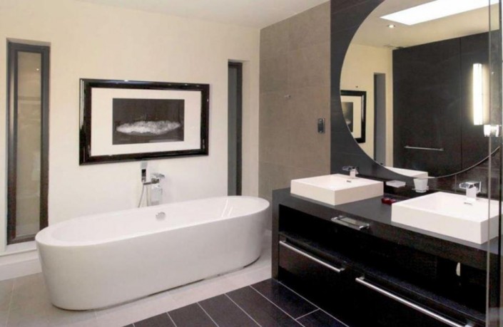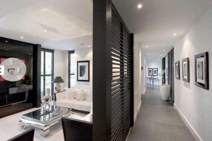 В особняке пять спален, крытый подогреваемый бассейн, отделенный от остальных комнат стеклянной стеной, сауна, бильярдная, медиа-центр, огромная кухня, гараж на две машины и прочие удобства.