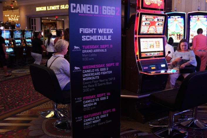 Рекламные баннеры, стенды о предстоящем бое можно увидеть чуть ли не у каждого игрового автомата в казино.