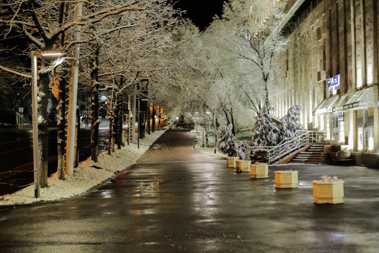 Обещанный синоптиками Атлантический циклон пришел на юг Казахстана. Снег выпал в Алматы, Шымкенте, Таразе и Туркестанской области. Жители южной столицы могли наблюдать за снегопадом 9 апреля. Но если днем осадки быстро таяли на асфальте, то к вечеру город был окутан белым снегом. Ночью тихий и пустой Алматы стал по-настоящему сказочным. Фотограф Tengrinews.kz Алихан Сариев прогулялся по ночному городу и запечатлел южный апрельский снег.