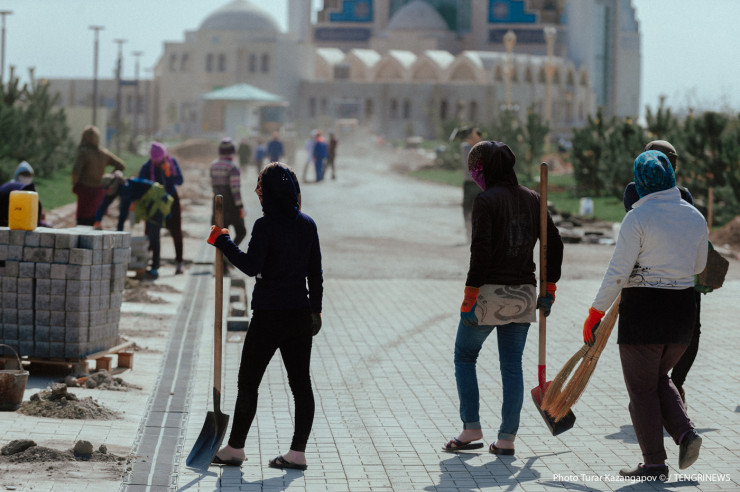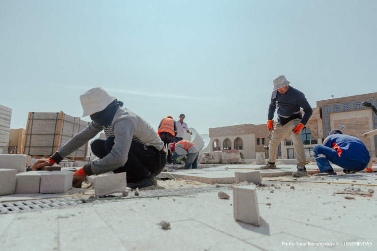 "Сейчас в связи с пандемией Узбекистан закрыт, поэтому привлекается местная рабочая сила, очень много местных, вот, допустим, из ближайшего села Ынтымак и других поселков. Даже сами стройкомпании организуют для рабочих транспорт", - говорит заместитель руководителя управления архитектуры и градостроительства Туркестанской области Бактыбай Дюйсебеков.