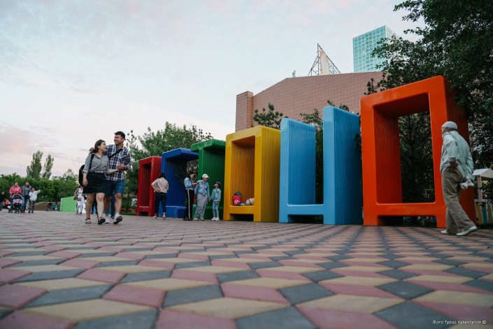 Огромные разноцветные скамейки в виде букв вместе составляют слово - имя столицы.