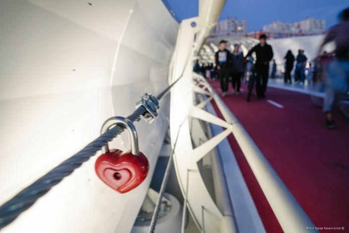 Кто-то из молодожен уже успел здесь оставить символ вечной любви - замок в виде сердечка.