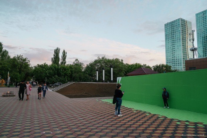 Еще один сквер появился на правом берегу, в районе пересечения проспектов Женис и Богенбай батыра.