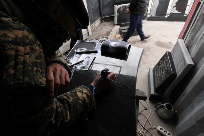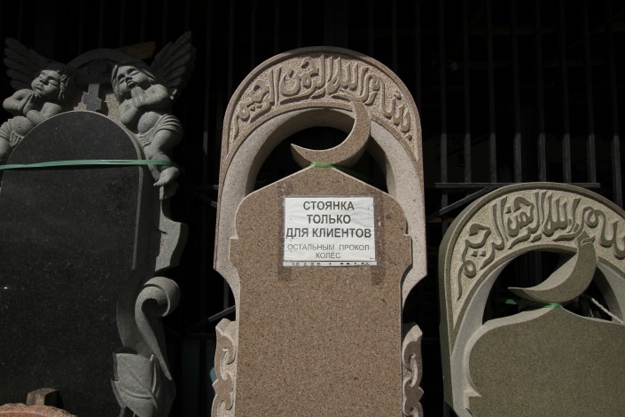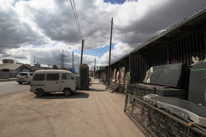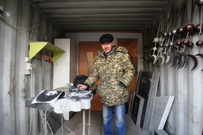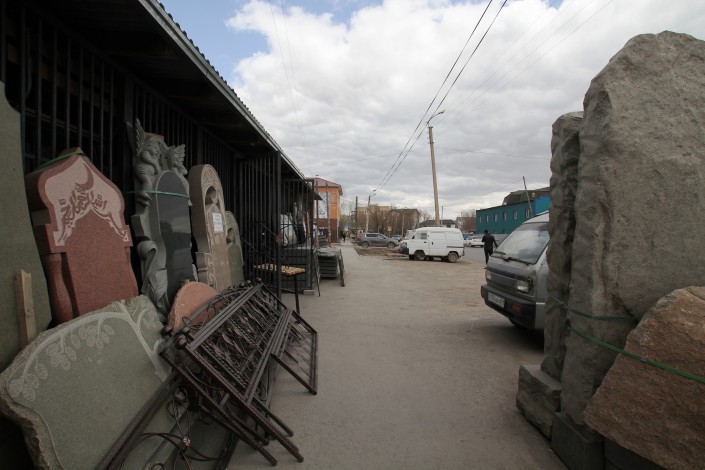 Такой цех по изготовлению памятников на этой улице не один. Подобные фирмы здесь чуть ли не на каждом шагу. Сами бизнесмены называют разные цифры: говорят, в одном квартале работают от 15 до 30 предприятий.