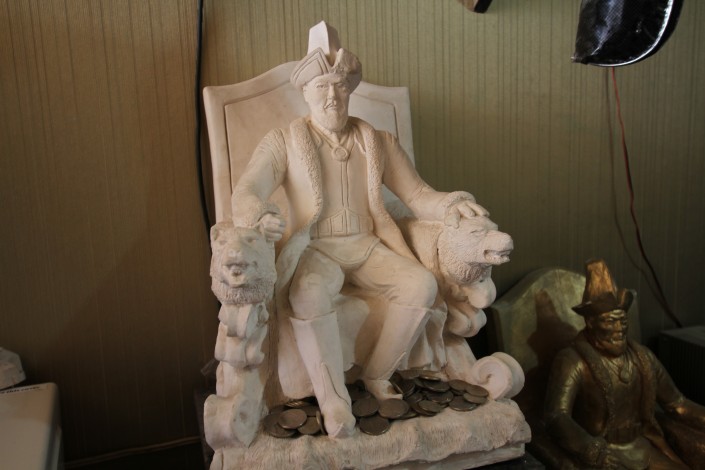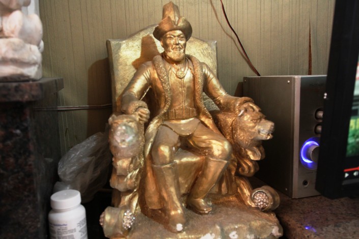 "Это фигура Абылай хана, наши ребята делали, это была дипломная работа", - говорит Нурхан.
