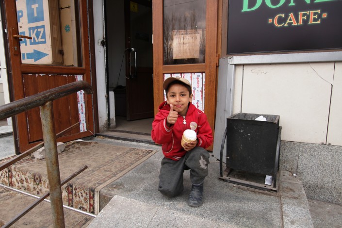 Попозировав, детишки принялись наперебой просить мелочь. Это для них привычное занятие.