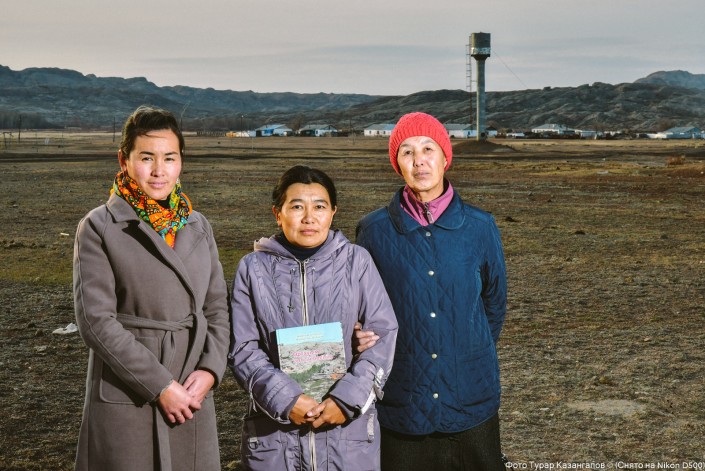 "Плюс нашего поселка в том, что у нас свет постоянно есть, ведь бывают же такие села, где совсем света нет. А минусы в том, что сети нет и дома культуры нет", - говорит социальный педагог и учитель казахского языка Акбота Тажигулова (на нижнем фото в центре).