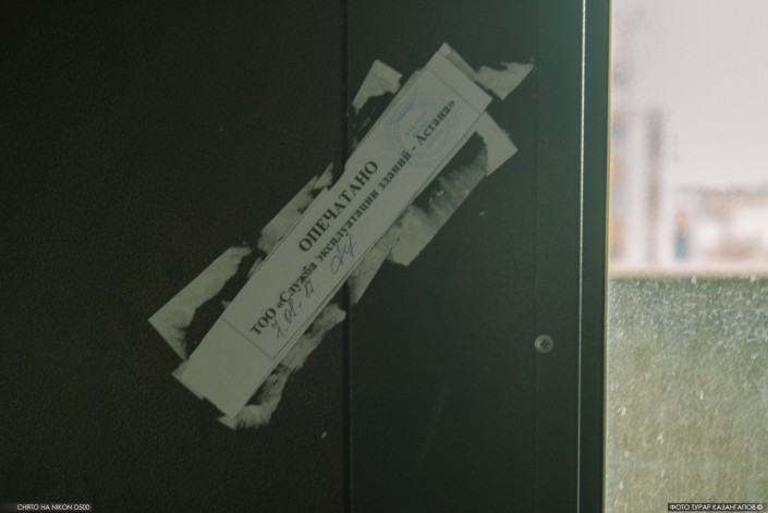 Этот дом расположен в одном из многолюдных мест - на набережной реки Есиль. Чтобы не допустить прохода туда посторонних, местному КСК пришлось расклеить специальное объявление.