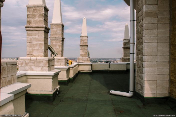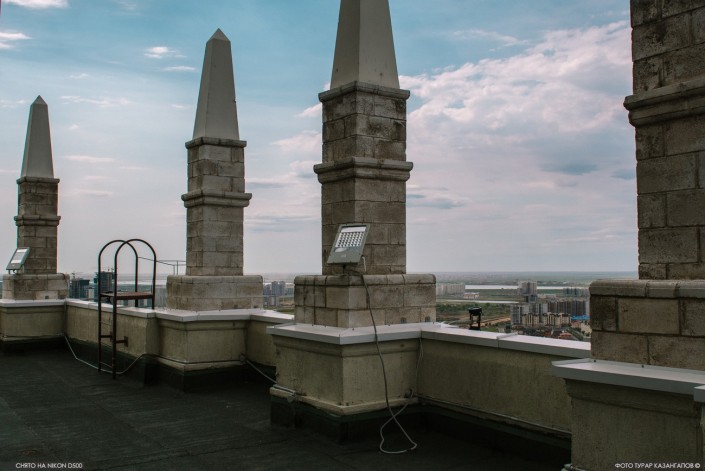 То, что с крыши "Изумрудного квартала" открывается хороший вид на административный центр столицы, это правда, но с некоторой оговоркой. Чтобы этот вид действительно открылся, нужно заглянуть за ограждение. А это не так просто, как кажется.