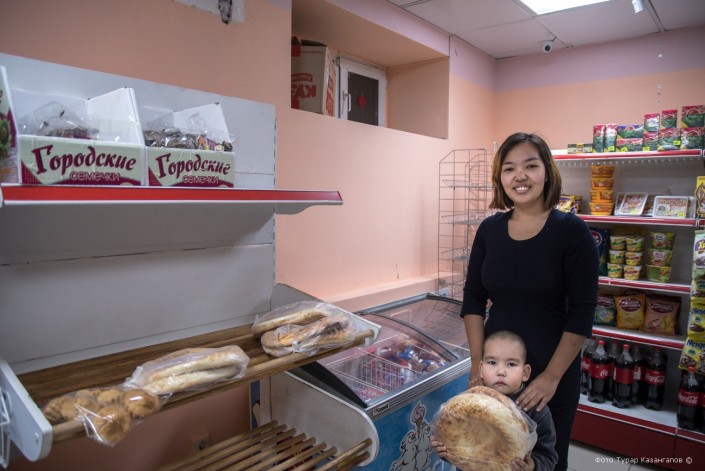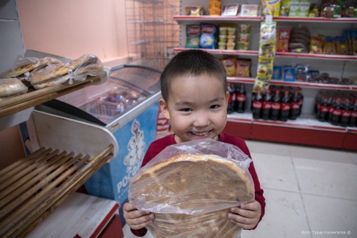"Мы когда открывали магазин, то сразу решили, что раз в неделю мы будем делать хлеб бесплатным. Любой желающий в пятницу может взять у нас к своему столу хлеб бесплатно", - рассказывает хозяйка магазина Таншолпан.