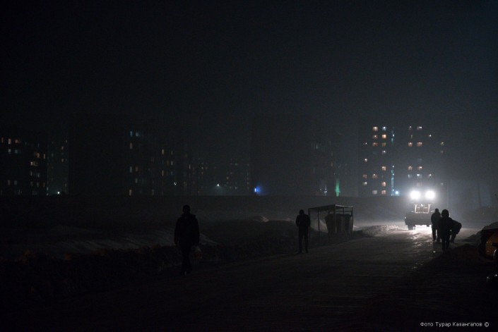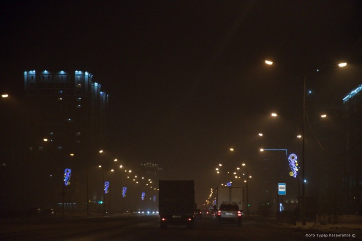 В безветренную погоду в частном секторе на юго-востоке Астаны стоит смог. Во время него и днем-то видимость не очень, а вечером здесь вообще ничего не разглядеть.