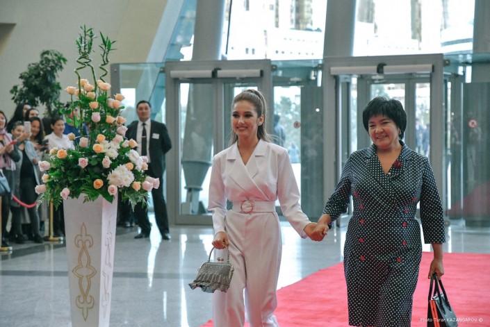 Салтанат Серкебаева была выбрана на роль 15-летней Томирис. По красной дорожке Салтанат прошлась вместе со своей мамой, которая не скрывала волнения.