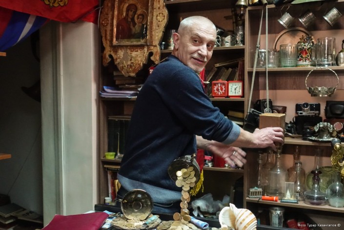 "У каждой вещи должен быть свой хозяин. Когда я продаю что-то,  для меня неинтересна сумма. Меня волнует, куда именно уходит эта вещь. Когда у меня приобретают монету, а потом ее перепродают, мне так обидно становится. А вот когда вещь обретает своего хозяина, я очень доволен. Или когда приходят просто за воспоминаниями, так приятно на душе. Вот бабушке, которая любит открытки, я ей их дарю. Ну как вы будете просить у пожилого человека деньги за открытки?"
