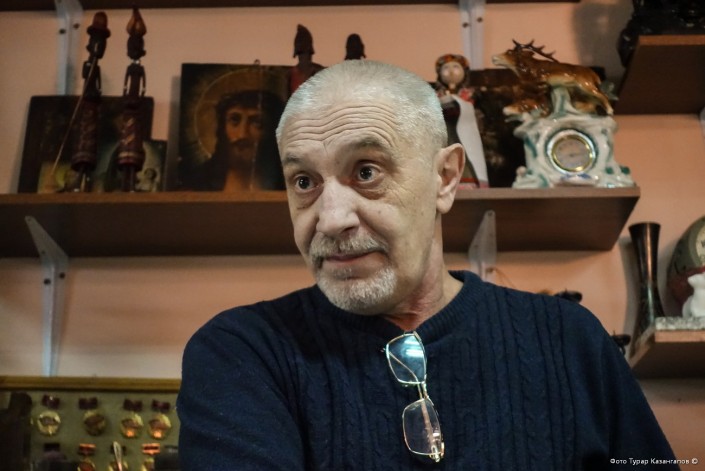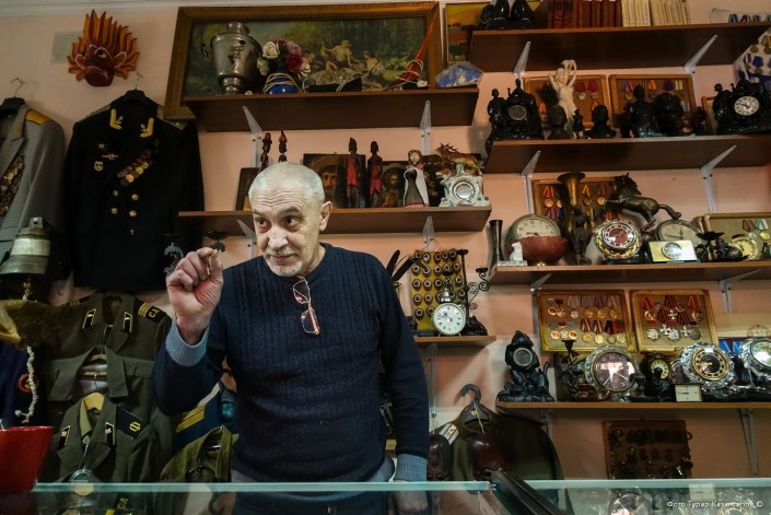 "Идея магазина появилась не просто так. Когда в Прибалтике был, я зашел в одну квартиру. Увидел, что одна вещь в этом доме передается по наследству, от отца к сыну. Это сейчас есть такая традиция, в то время это не было нормой, не было принято так. Кто ехал на целину, с одним чемоданчиком уезжали и все. Когда я вернулся домой, сказал себе, что буду собирать коллекции. Дочкам будет что оставить. Собрал, а уже девать-то некуда. Поговорил с Валерой Семеновым (владелец антикварного магазина на Сейфуллина - прим. автора). Так и появилась антикварная лавка. Но ты никогда сюда не поставишь продавца. Это не трусы продавать или продукты питания".
