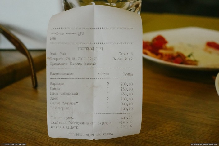 Перекусили мы с фотографом на 1 760 тенге.