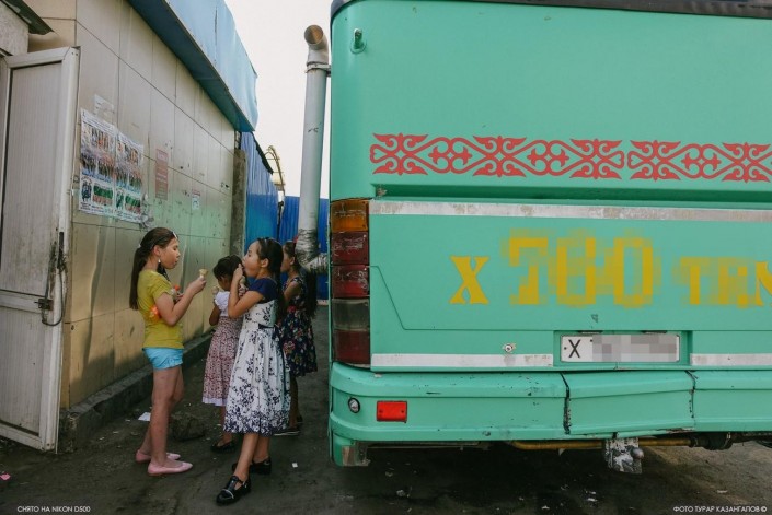 Из беседы с продавцами рынка мы поняли, что большинство из них приехали работать в Астану из Южно-Казахстанской области. Возможно, поэтому большая часть автобусов здесь с госномерами 13-го региона.