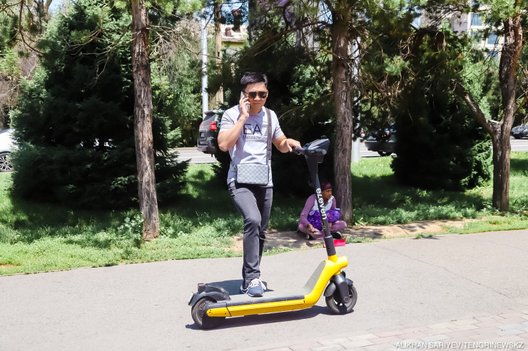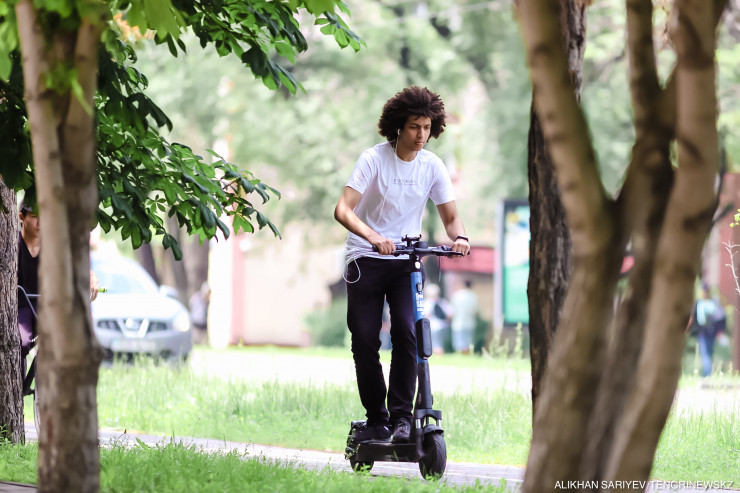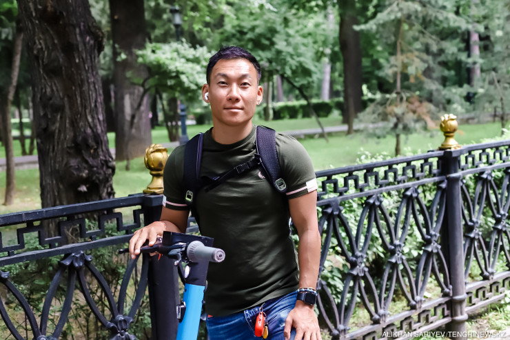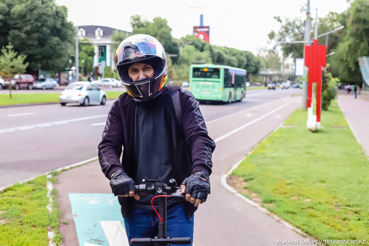 "Вчера по Достык была такая пробка, а я доехал на самокате. Да и вообще по кайфу: лето, Алматы, самокаты. Во многих городах их нет. У нас девочки даже в платьях едут, с работы, сами покупают, много таких вижу. Я купил подписку, не плачу за старт каждый раз, чисто плачу за время пользования".