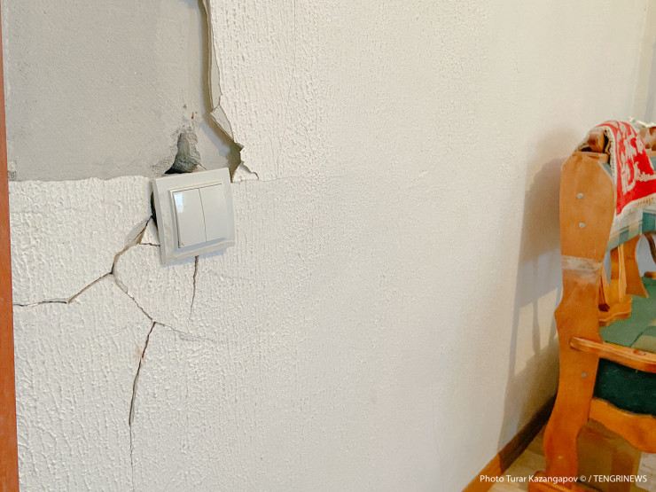 "У нас одна проблема - качество этих домов. Стены сыплются уже, полы гниют, а ведь еще года нет, как мы здесь живем. Сырость, запах. Вот если бы были люди, которые контролировали качество строительства этих домов (стучит по тонкой стенке), то было бы хорошо. Можно было бы уже доделать, чтобы все люди были уже довольны, и никто не жаловался бы. Так как эти дома стоят на гарантии, мы хотим, чтобы в течение года устранили все эти неполадки", - рассказывает женщина.