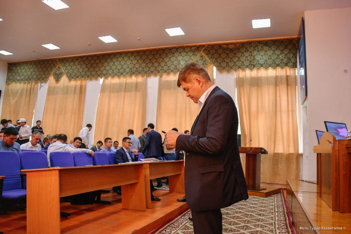Аскар Мамин наклонился, поднял микрофон и отдал его владельцу.