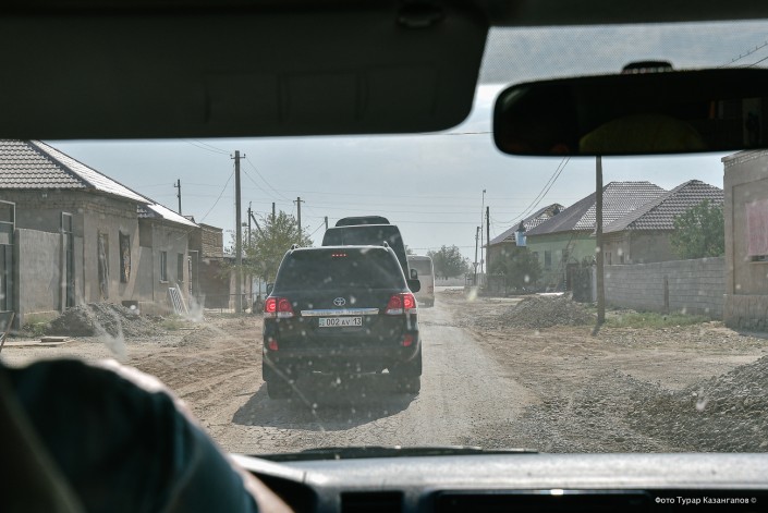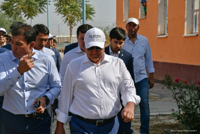 Премьер с министрами садятся в микроавтобус и уезжают дальше - в город Туркестан. Там им будет еще жарче.