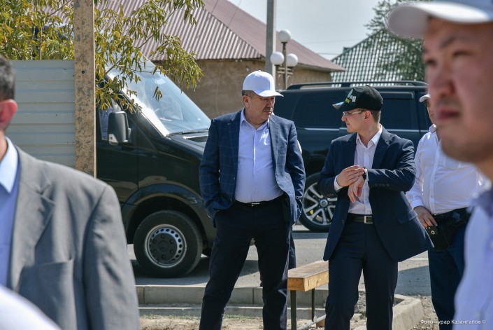 Аким Нур-Султана Алтай Кульгинов. Кстати, может появиться вопрос, что он делает в Туркестанской области. За строительство и ремонт на каждом участке отвечает какой-нибудь регион Казахстана. Есть в Арысе объекты, которые восстанавливает акимат столицы.