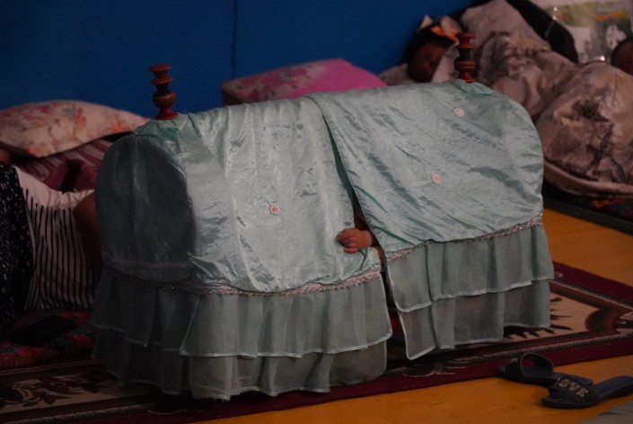 К утру в организованных для эвакуированных местах людей стало меньше. Некоторые, как эти люди на фото, решили спать прямо на улице из-за духоты в переполненных помещениях. Многие разъехались к родственникам, какая-то часть поехала обратно в Арысь в попытке прорваться через блокпост и забрать свои вещи.