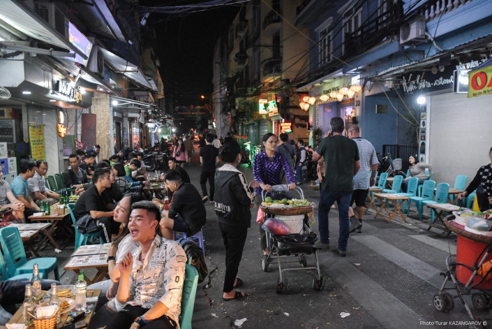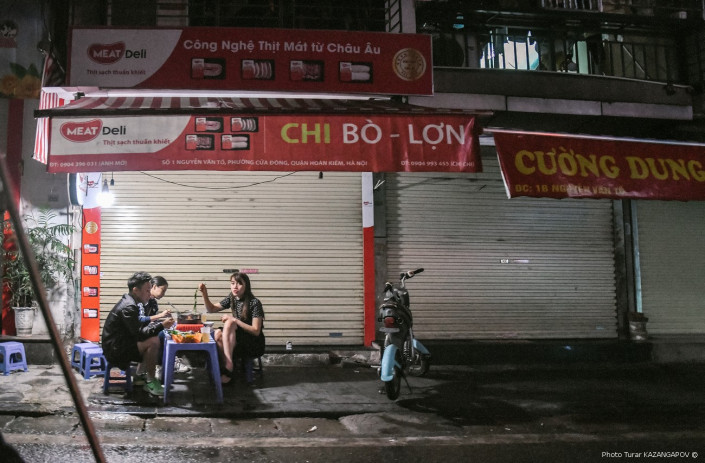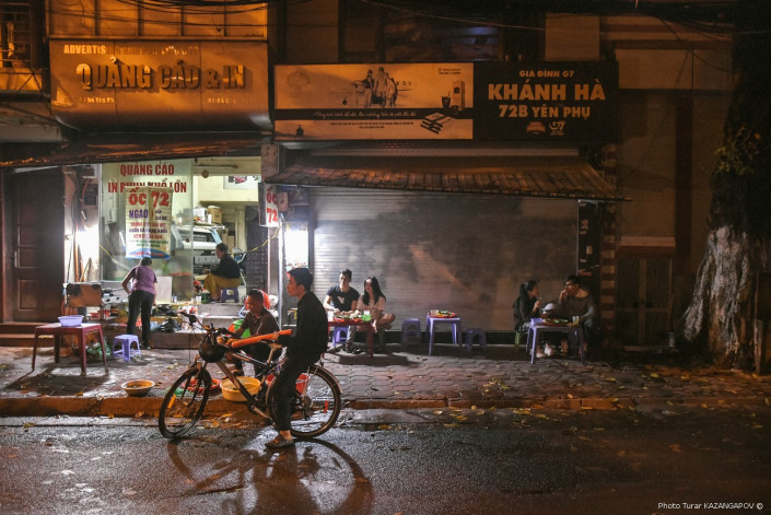 Наш собеседник вряд ли видел вечернюю жизнь Вьетнама, потому что он сказал, что в этот раз у них был достаточно жесткий график и они двигались по программе, так что прогуляться по городу им не пришлось. Но вообще, типичная вечерне-ночная жизнь Ханоя выглядит вот так.