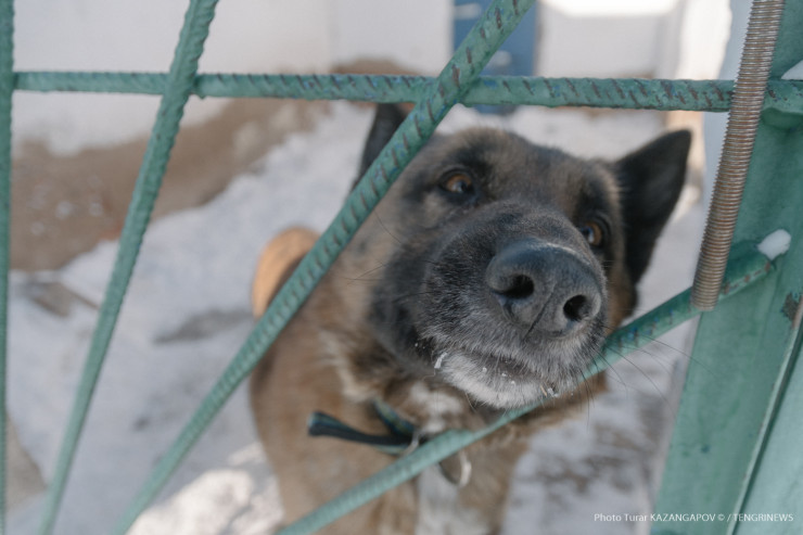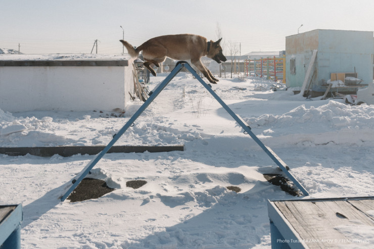 Айк - помесь немецкой и бельгийской овчарки, ему три года. Воспитывает его кинолог Данияр Жусупов.