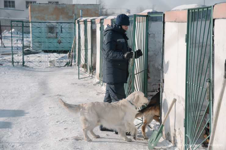 Руководитель кинологического отделения Андрей Марышев - самый большой друг собак, которые находятся на службе в столичном ДЧС. Его рады видеть все обитатели вольера, но особенно его две служебные собаки - овчарка Пауль и голден-ретривер Тай.