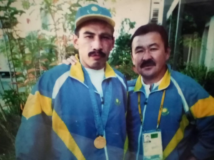 "Керек емеспін". Бекзатты чемпион еткен бапкер қазір қайда жүр? Бекзат Саттарханов бапкері Тұрсынғали Еділовпен. © Бапкердің жеке архивінен