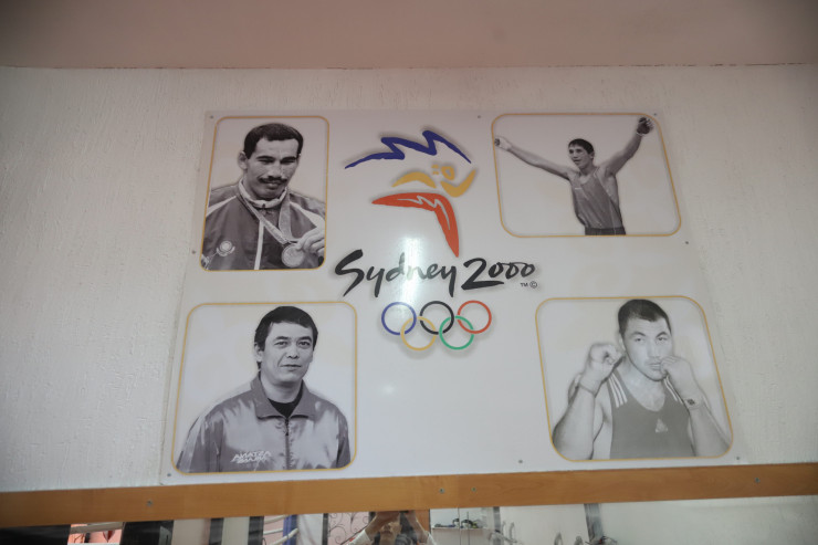 Бір бұрышта Сиднейде топ жарған боксшылардың суреті ілініп тұр. Еділовтің мақтанышы.