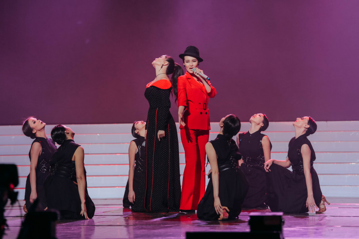 Популярная певица Камшат Жолдыбаева исполнила свою композицию вместе с финалистками Зере Молдабековой, Гульсаей Муратовой и Мадиной Толепкуловой.