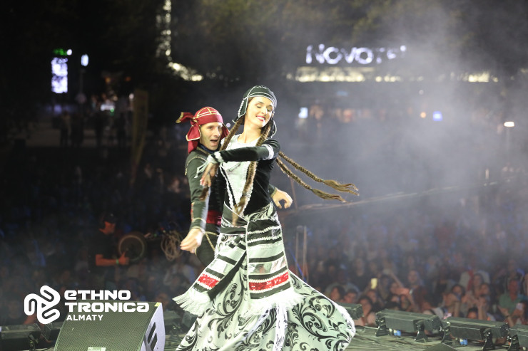 Затем шоу продолжилось долгожданным выступлением представителей Грузии. В самобытность, свободолюбие и энергию этой солнечной страны зрителей Ethnotronica Almaty погрузили трио Simi и Gzeba Georgian Dance.