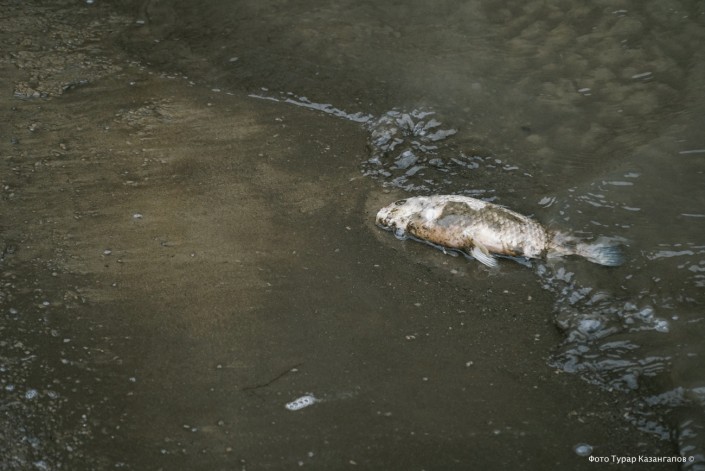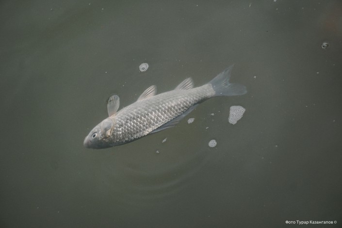 "Сегодня мы увидели рыбу, которая полуживая. Она уже не жилец, но у нее жабры красные, она шевелит хвостом. И, конечно, есть большие опасения, что, возможно, до сих пор идет это заражение", - высказывает свое мнение местный активист Арман.