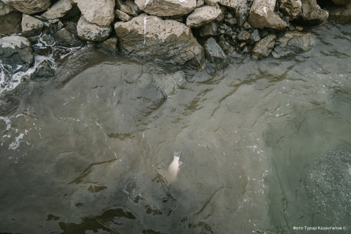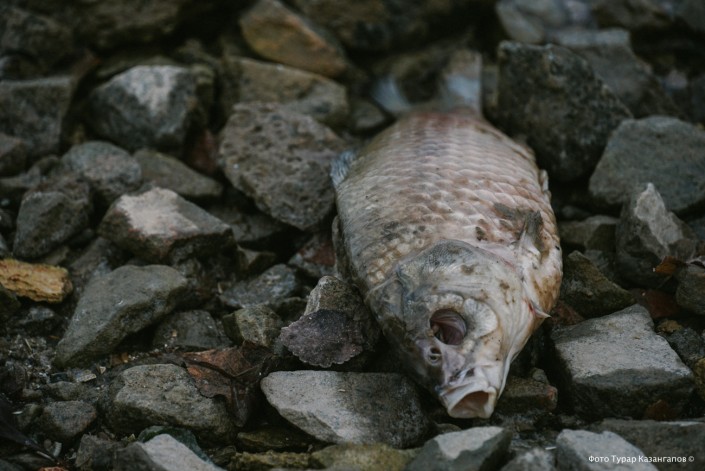 "За всю свою сознательную жизнь, а мне сейчас 35 лет, я такого не видел, чтобы сразу было столько мертвой рыбы. Катастрофу такого масштаба я вижу первый раз", - отмечает Арман.