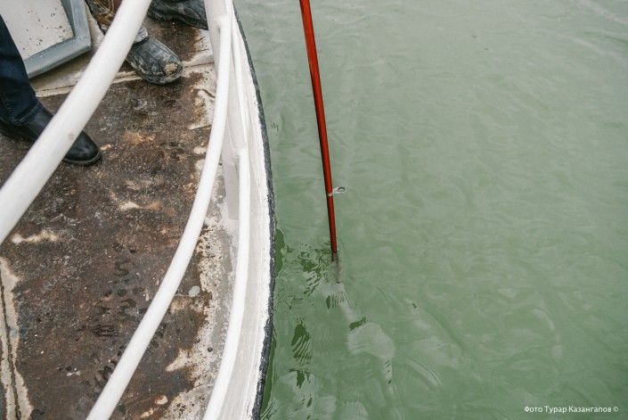 Все это время в разных местах атырауский активист Арман продолжал опускать телескопическую удочку с экшн-камерой на дно.