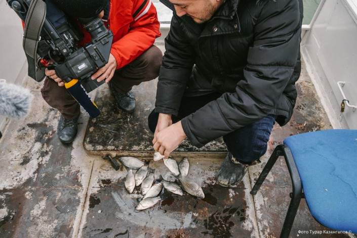 "Мы надеялись, что это был всплеск и все унесло, но надо срочно все научно проверять, доказывать и изучать. Чтобы знать всю правду хотя бы по качеству воды для рыбных хозяйств и для питья народа", - говорит активист Арман.